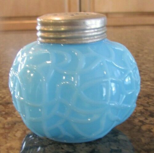 BLUE MILKGLASS SALT SHAKER W/ORIGINAL LID