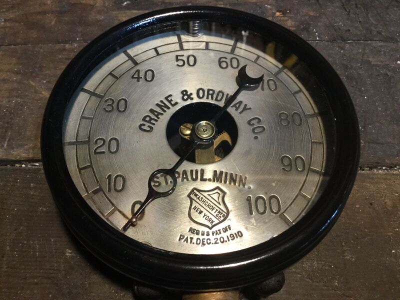 Antique Ashcroft Steam Pressure Skeleton Gauge 100+ Years Old Steampunk NICE!