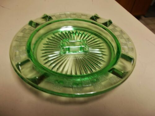 Title (ebay affiliate link): VINTAGE DEPRESSION GLASS ASHTRAY GREEN GLASS CENTER HAS A MATCH HOLDER 4 RESTS