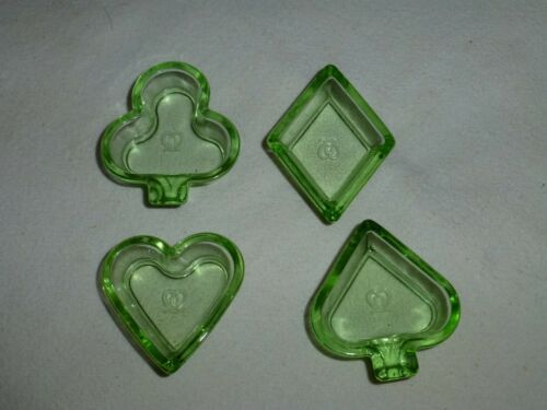 Title (ebay affiliate link): DEGENHART GLASS-DEPRESSION GREEN-SET OF FOUR SALT CELLARS-CARD SUIT PATTERNS