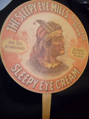 VTG HAND FAN SLEEPY EYE INDIAN FLOUR BUSTER BROWN SHOE