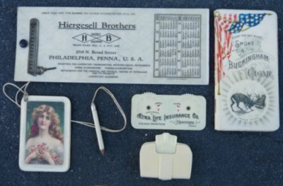 5 Old Celluloid Adv.: Blotters, Pad, Cigar, Life Ins.,