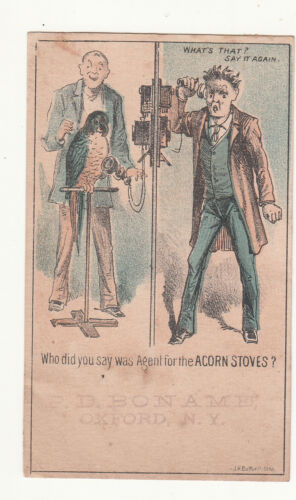 Title (ebay affiliate link): P D Bon Amee Oxford NY Acorn Stoves Telephone Parrot Vict Card c1880s