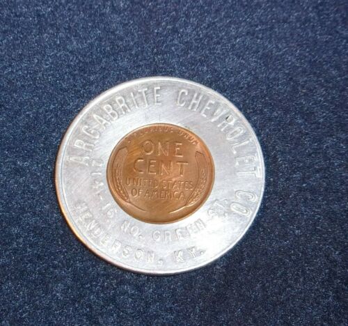 Title (ebay affiliate link): Argabrite Chevrolet Co, Green St, Henderson, Kentucky Lucky Penny Token Encased