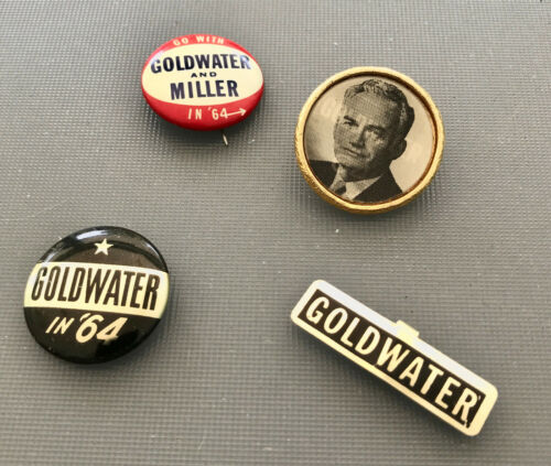 Title (ebay affiliate link): Set of 4 Goldwater / Miller Campaign Buttons from 1964