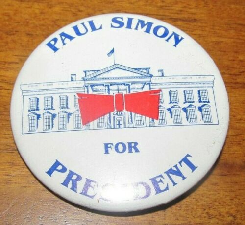 Title (ebay affiliate link): 1988 Paul Simon for President Campaign Button Pin Pinback Bow Tie White House