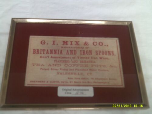 Title (ebay affiliate link): Vtg. Original Adv. c. 1876 G.I. Mix & Co.-Yalesville, CT