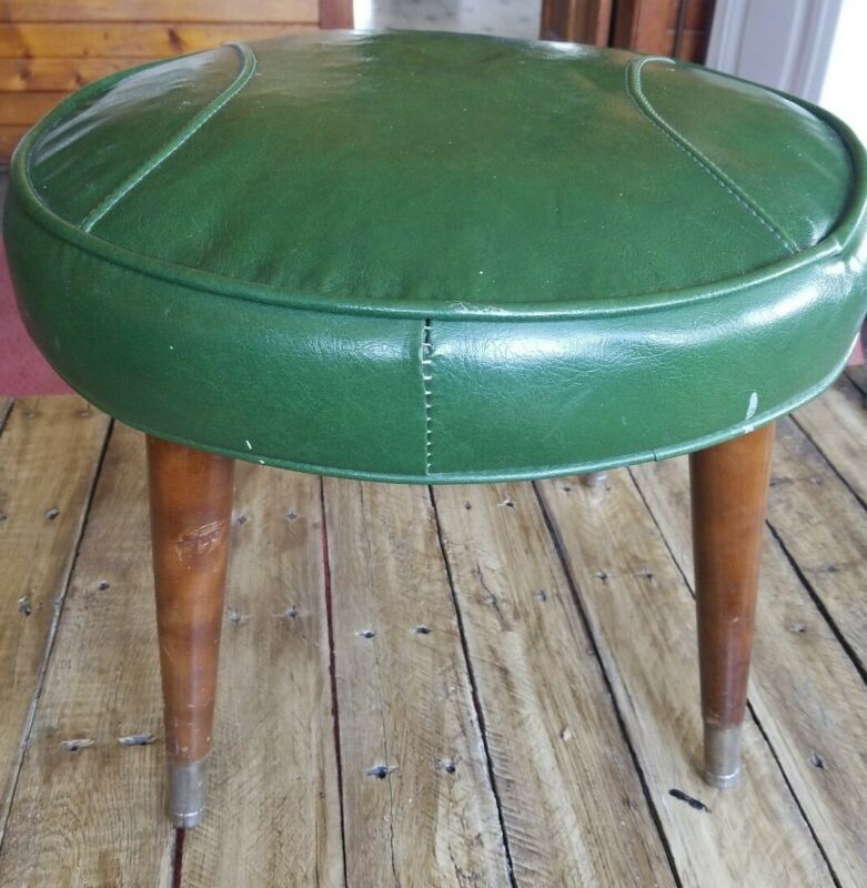 Title (ebay affiliate link): Vintage 16" Retro 1970s Green Round Stitched Leather Footstool Ottoman Stool