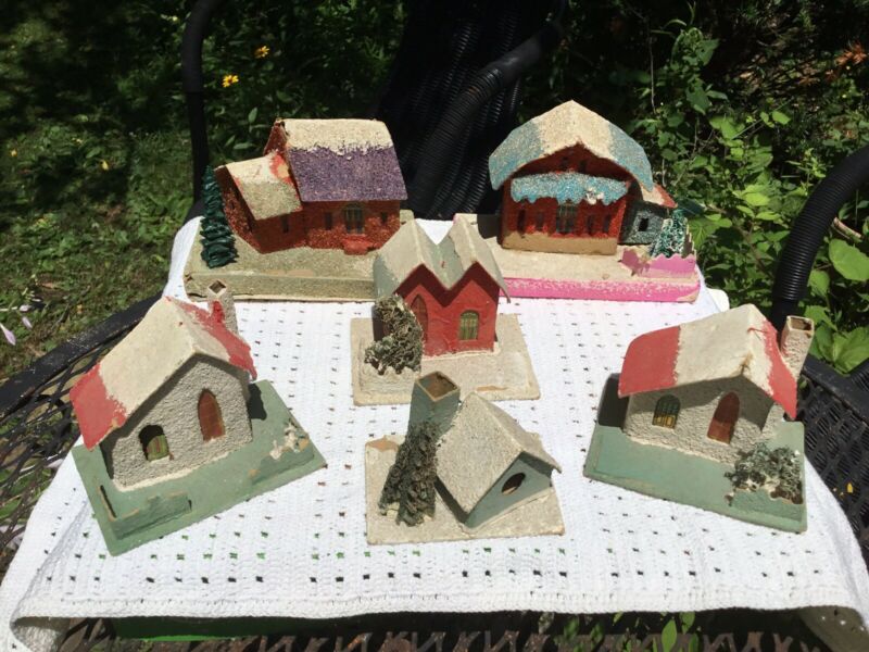 Title (ebay affiliate link): Vintage Paper Mache Christmas Village Lot(5)Japan Putz Like Cardboard Buildings