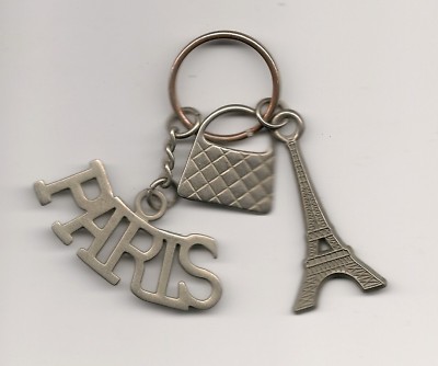 Vintage France Keychain w/ 3 Metal FOB's