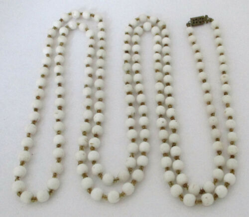 Vintage Milk Glass Bead Necklace 56"