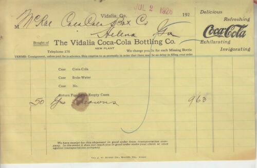 Title (ebay affiliate link): THE VIDALIA COCA-COLA BOTTLING CO. INVOICE DATED JULY 2,, 1926