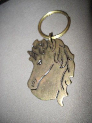VINTAGE UNICORN HEAD KEYCHAIN BRASS OLD UNUSUAL