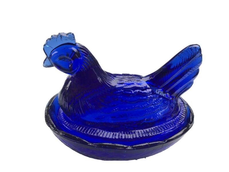 Title (ebay affiliate link): Vtg Cobalt Blue Depression Glass Miniature Hen on Nest Salt Dip Cellar