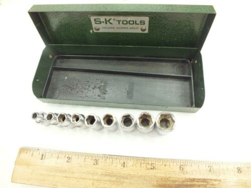 S-K TOOLS 1/4" DRIVE SHALLOW SOCKET SET IN METAL BOX - USA - SK TOOL