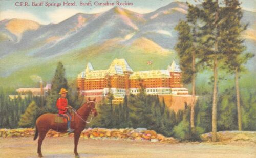 Title (ebay affiliate link): CPR Banff Springs Hotel RCMP on Horseback Banff Alberta AL 20083