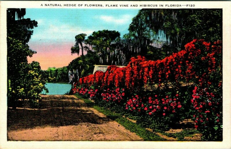 Title (ebay affiliate link): C38-8066, NATURAL HEDGE OF FLOWERS, FLORIDA. POSTCARD.