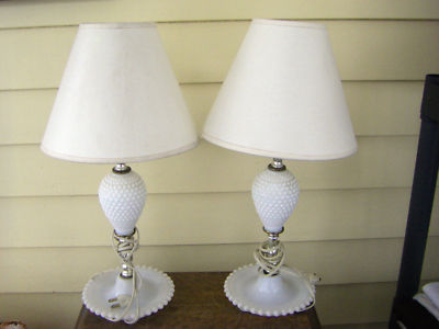 Pair of Milk Glass Hobnail Bedroom Table Lamps