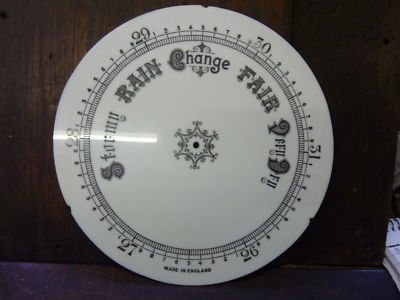 GOOD OLD ANEROID BAROMETER WHITE MILK GLASS 8" DIAL