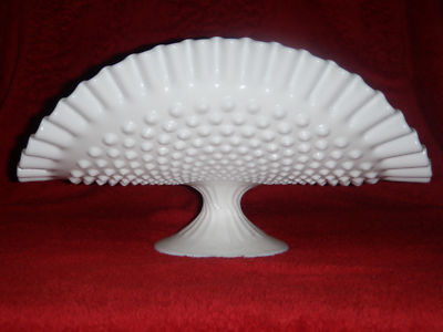 FENTON HOBNAIL MILK GLASS RUFFLED BANANA BOWL STAND !!!