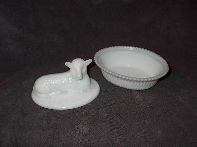 Vintage White Milk Glass lamb candy dish