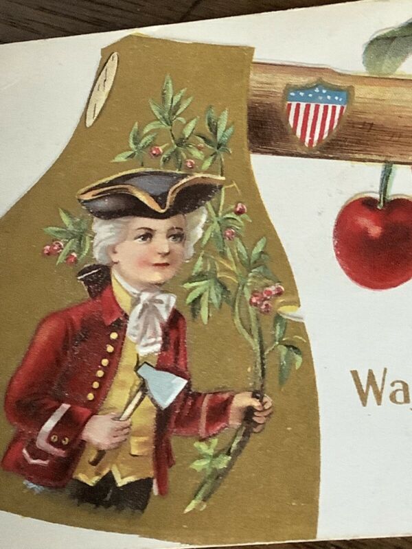 Vintage George Washington postcard cherries cherry axe hatchet 1914 Nash Damage
