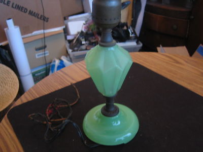 ANTIQUE GREEN MILK GLASS ? ELECTRIC TABLE LAMP