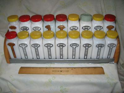 RARE VINTAGE GRIFFITHS 18 MILK GLASS SPICE JAR RACK SET