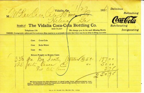 Title (ebay affiliate link): THE VIDALIA COCA-COLA BOTTLING CO. INVOICE DATED 1/27, 1926