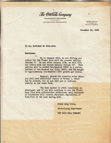 Title (ebay affiliate link): THE COCA-COLA COMPANY WILMINGTON DELAWARE LETTERHEAD DATED DECEMBER 26, 1940