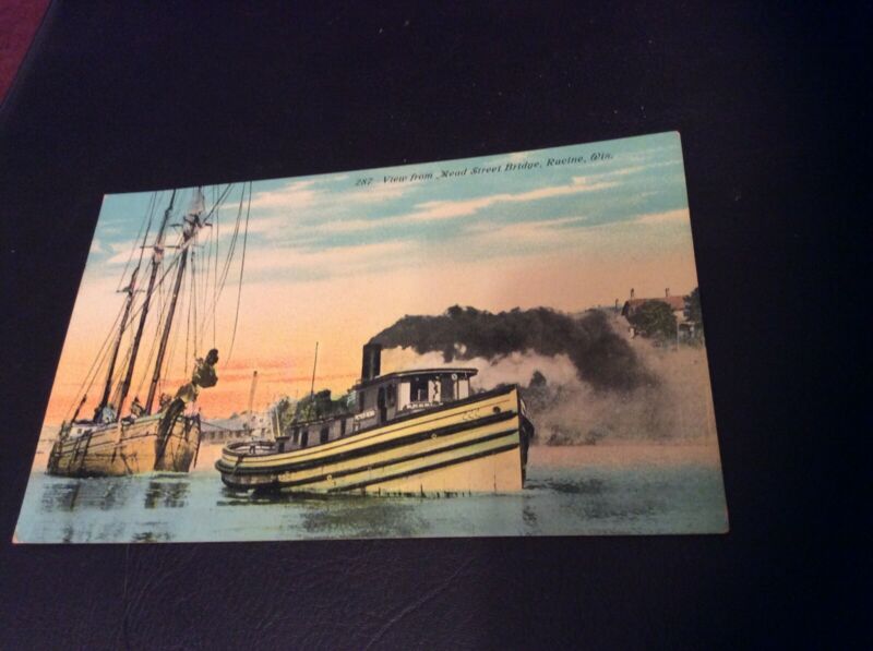 Title (ebay affiliate link): Racine, Wisconsin View From Mead Street Bridge Ships Smoking Antique Postcard