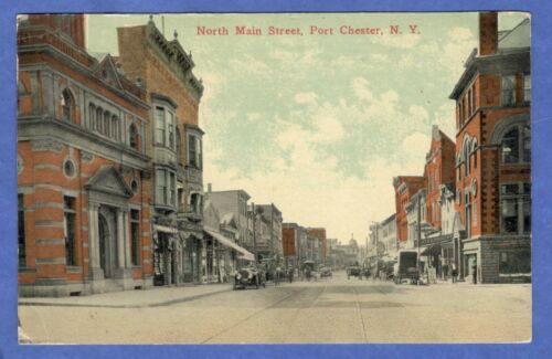 Port Chester, NY, North Main Street, Tracks, Old Autos, Dentist, Postcard