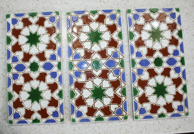 Title (ebay affiliate link): Vintage Tile Spain Geometric 6 x 12 set 3 Border or Tabletop Blue Green