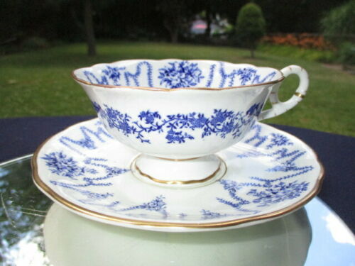 CUP SAUCER COALPORT WIDE MOUTH BEAUTY COBALT BLUE SWAGS & PENDANTS OF ROSES