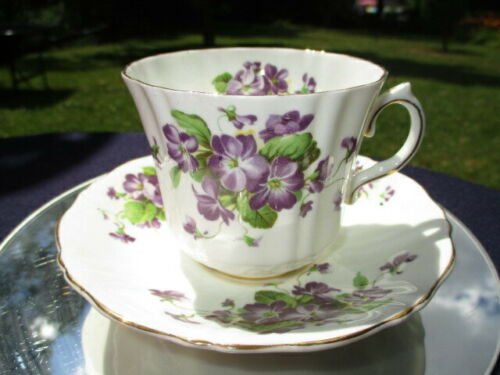 CUP SAUCER OLD ROYAL ENGLAND BUNCHES OF PURPLE VIOLETS SWEET AS SPRING