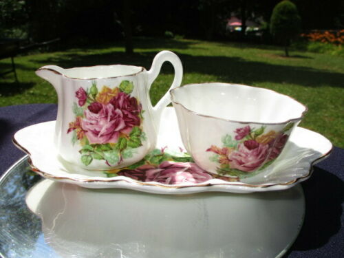 TEA TIME BRUNCH CREAM SUGAR SERVICE TRAY ROYAL STUART PINK & WINE ROSES ENGLAND
