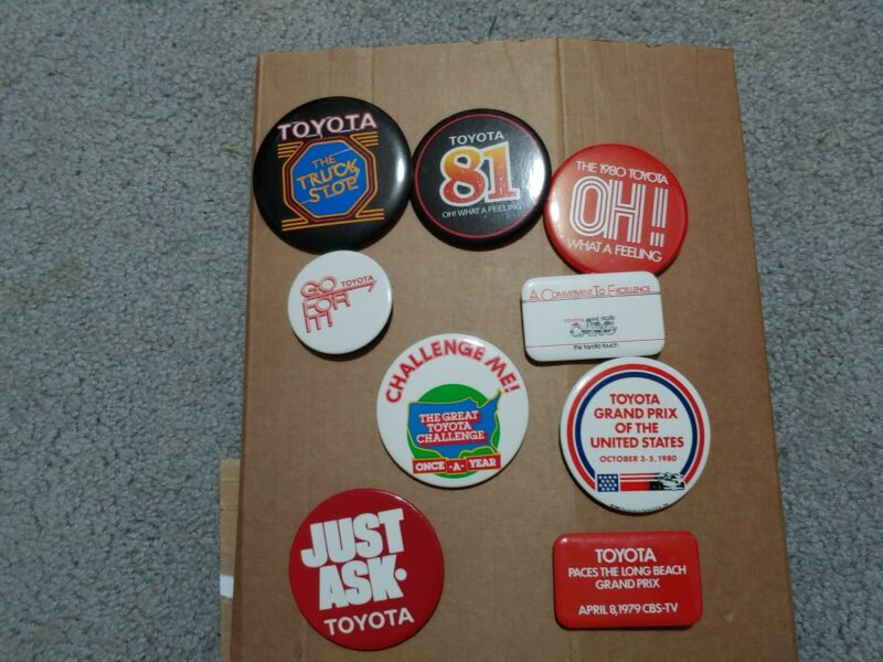Title (ebay affiliate link): VINTAGE TOYOTA PIN BACK BUTTON Advertisment Lot of 9