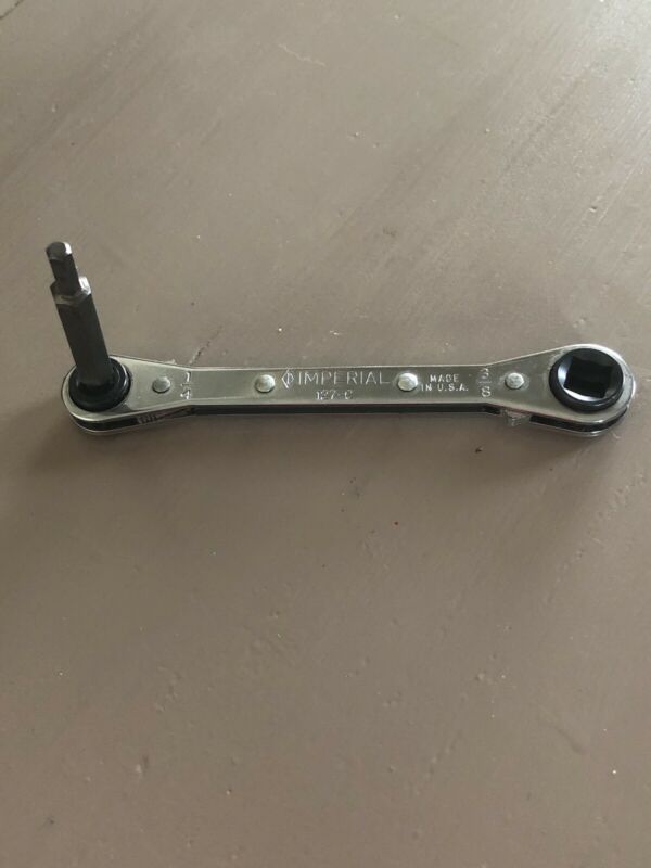 Imperial refrigeration ratcheting wrench 1/4 & Malco 3/16 hex key wrench insert.