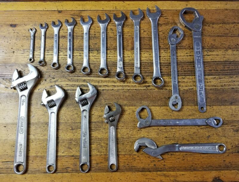 Title (ebay affiliate link): VINTAGE Tools Adjustable WRENCHES Spanners Mechanic Wrench Mixed Tool Lot IMP/US