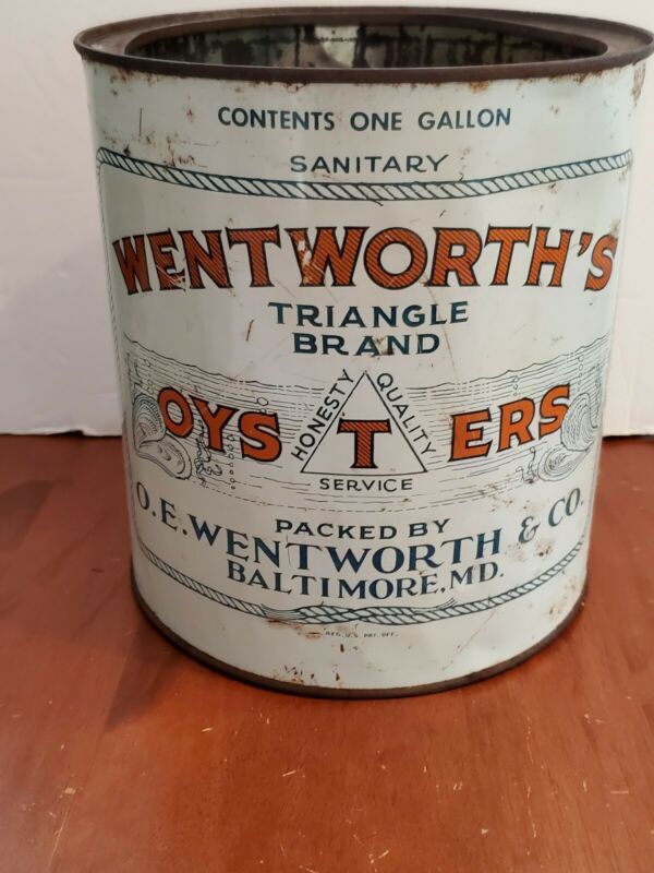Title (ebay affiliate link): O.E. WENTWORTH''S & CO TRIANGLE BRAND CHESAPEAKE BAY OYSTERS TIN BALTIMORE, MD A+