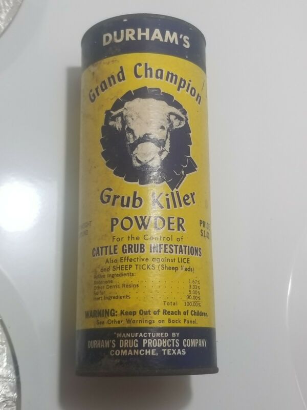 Title (ebay affiliate link): DURHAM''S GRAND CHAMPION GRUB KILLER COMANCHE TEXAS 3 COLOR COW CARDBOARD CAN