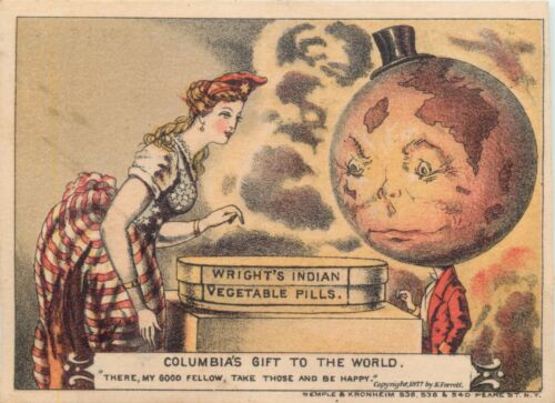 Title (ebay affiliate link): Tradecard, Wright''s Indian Vegetable Pills, "Columbia''s Gift To The World"