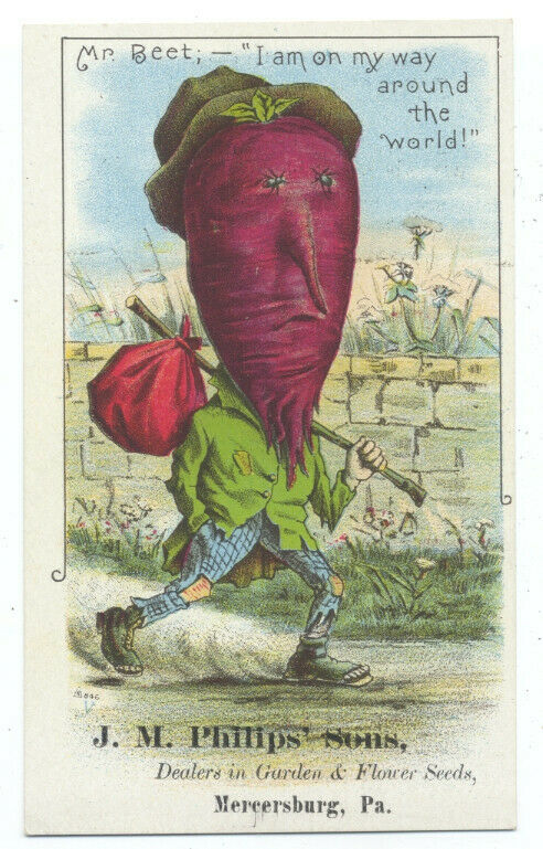 Title (ebay affiliate link): Mr. BEET HEAD HOBO Philip''s Seeds MERCERSBURG PA ca1890 FANTASY Trade Card RARE
