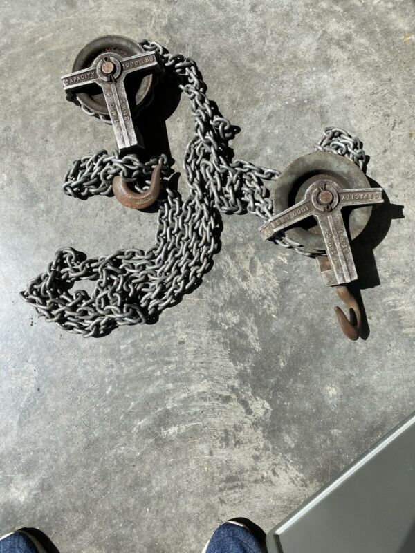 Title (ebay affiliate link): Vintage 1/2 Ton T-M-C Cast Iron Pulley Block Tackle Chain Hoist Wench