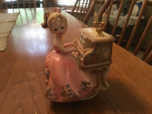 Vintage Josef Originals, Girl in pink at piano, Music box, plays Tammy, 1957,