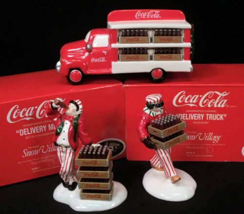 NOS DEPT 56 SNOW VILLAGE COCA COLA DELIVERY TRUCK 5479-8 & DELIVERY MEN 5480-1