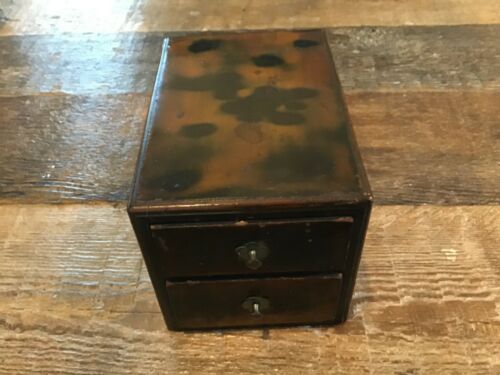 Antique lacquer Faux Tortoise Shell Box with 2 drawers