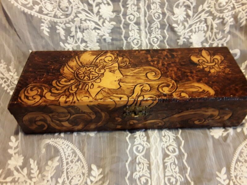 Title (ebay affiliate link): VINTAGE FLEMISH ART PYROGRAPHY JEWELRY/GLOVE/VANITY/HANKIE WOODEN BOX **ESTATE**