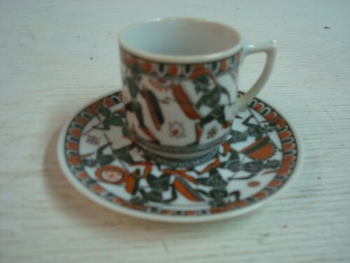 Beautiful Vintage Minature Tea Cup and Saucer, Warriors Fighting, Greece