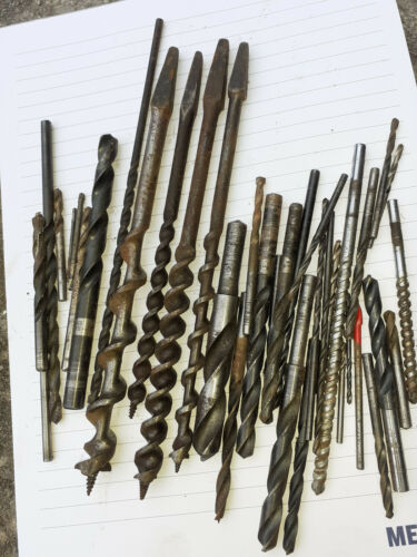 Vintage JOB LOT 38 x Drills, Augers, some HHS, Metal, and Masonry Drill Bits